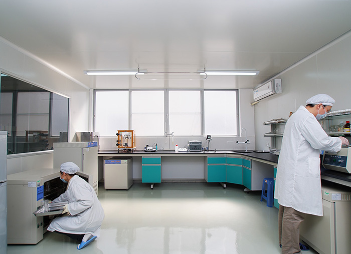 工廠按照GMP生產標準建設,參照美聯邦標準FS209E以及日本JIS(9920-1989)標準進行設計建造。6S管理原則,OEC工作法,高標準的生化研究室,確保技術優勢所需硬件要求。 -